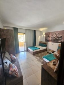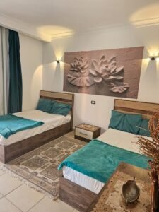 Stella Hanna verbindet modernen Komfort mit orientalischem Flair. Das stilvoll eingerichtete Apartment bietet ein Schlafzimmer und ein Wohnzimmer – beide mit TV – sowie einen Balkon zum Entspannen. Ideal für alle, die das Besondere suchen.